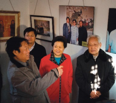 上图、中共徐州市委书记徐鸣、徐州市市长曹新平陪同著名歌唱家王昆(中) 参观李可染旧居 /2007年