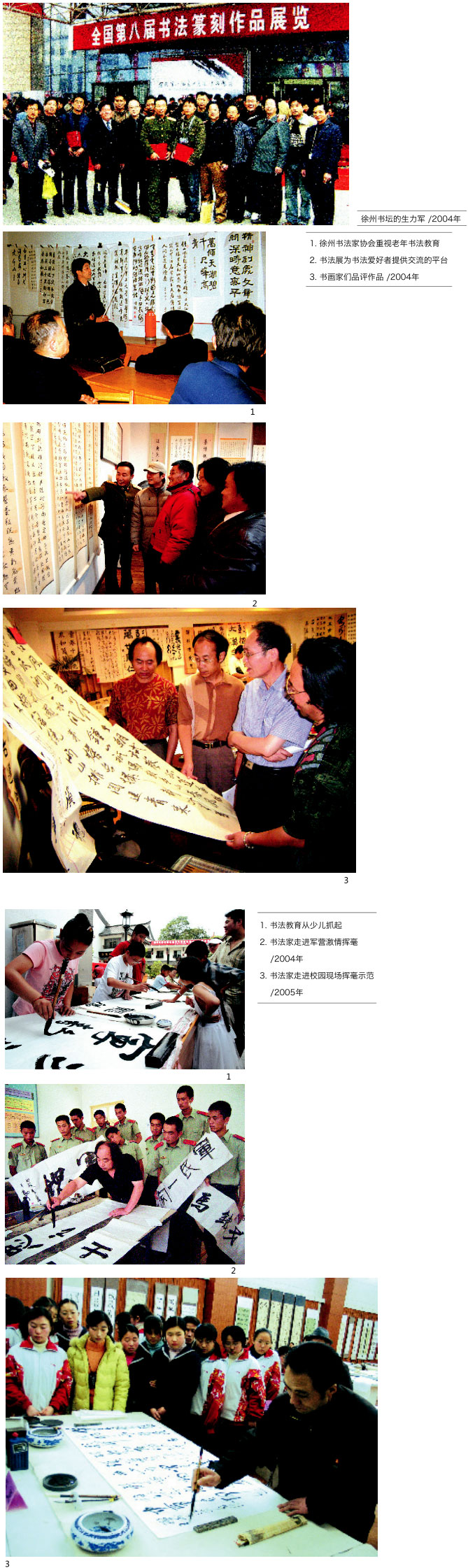 徐州市书协在中国书协倡导的“书法进万家”活动中成绩卓著,2006年荣获了由中国书协授予的“书法进万家优秀基层单位”荣誉称号,并颁发了奖牌。