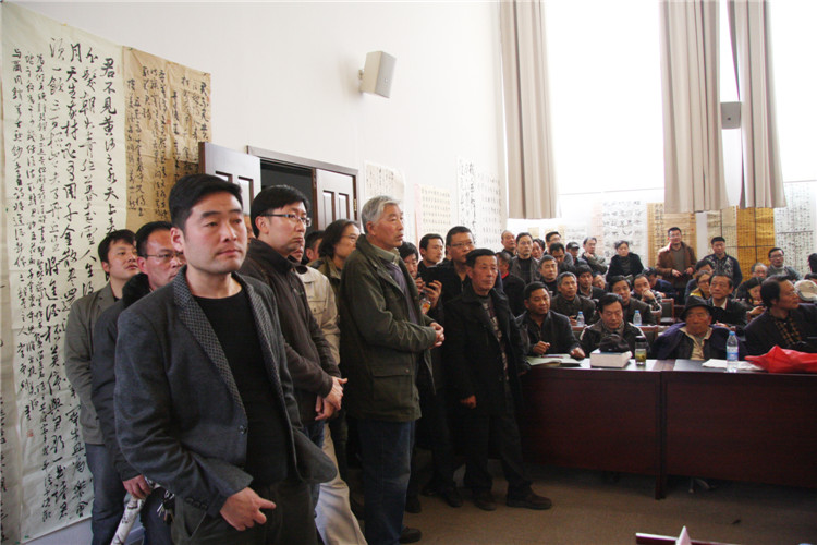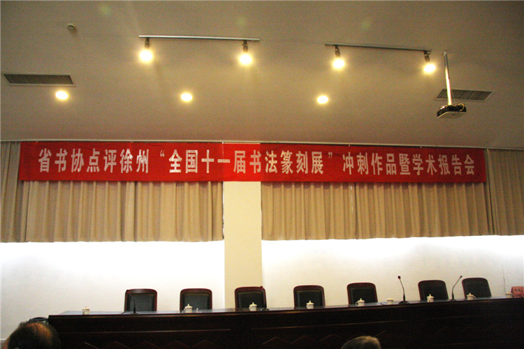 2015年04月15日下午14点整,徐州书法家协会在李可染艺术馆三楼多功能厅举行迎接十一届全国书法篆刻展点评会,中国书法家协会理事、楷书委员会秘书长,江苏省书法家协会副主席李啸先生,江苏省书法家协会副秘书长赵彦国先生、徐州书法家协会主席马亚先生,徐州市书法家协会副主席郭荐先生、张利先生、祝培粮先生、王国宇先生,徐州市书法家协会秘书长高伟先生、徐州市书法家协会副秘书长耿广敏先生、陈晖先生、王玉泉先生及400余名书法家和爱好者们参加了点评会。