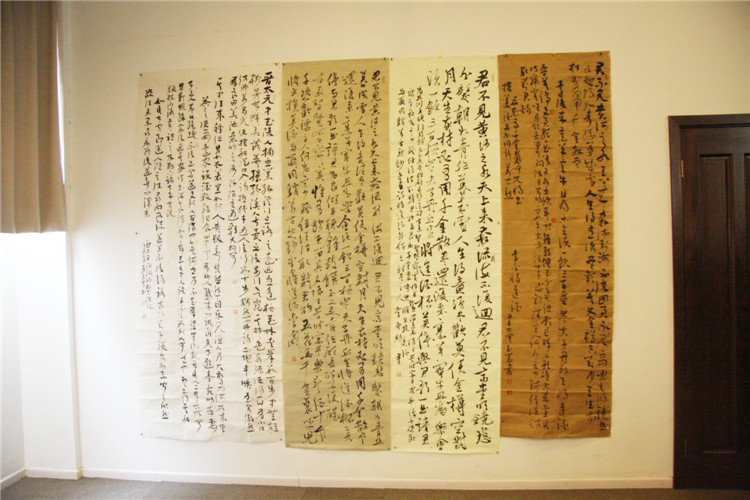 李主席从全国书法展的走向及发展方向,着重强调了中国书法要遵循传统,开拓创新,过度拼接、染色、做旧等刻意制作都极容易落选,盲目跟随时风的也不易入展或者获奖,大展中缺少整张宣纸的实力派作品,用较长时间给徐州作者进行分析和讲解。随后李主席和赵秘书长分别到每位作者的作品前,根据每位作者的特点逐个分析,使作者们受益良多,市书协主席团成员也与作者们互动交流,作者纷纷表示感受很多,并希望书协能够经常组织点评培训活动,各位作者表示回去后按照专家指导认真创作,改进不足,争取在国展中取得佳绩。
