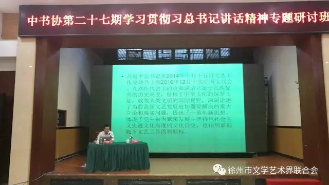 根据中宣部、财政部、文化部、新闻出版广电总局、中国文联、中国作协联合印发《2016—2017年全国文艺骨干和管理干部培训工作规划》及中国文联统一部署,中国书协于6月20日至23日在徐州举办第27期“中国书法家协会会员深入学习贯彻习近平总书记文艺工作座谈会重要讲话精神专题研讨班”。此次研讨班旨在引导广大文艺家、文艺工作者深刻领会习近平总书记文艺工作座谈会和中国文联十次代表大会上重要讲话精神以及党中央关于文艺工作、文联工作的重要指示精神。