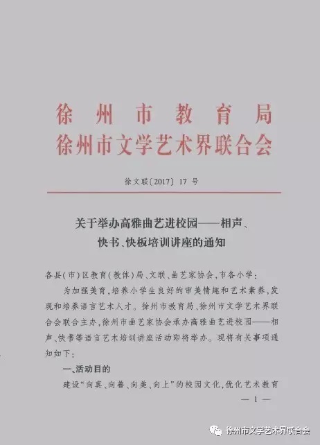 为加强小学生美育教育,培养良好的审美情趣和艺术素养,发现和培养语言艺术人才。徐州市教育局、徐州市文学艺术界联合会联合主办、徐州市曲艺家协会承办“高雅曲艺进校园——相声、快书等语言艺术培训讲座”活动即将举办。