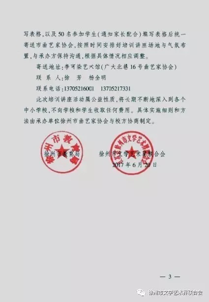 此次培训讲座活动属公益性质,将长期不断地深入到各个中小学校。具体实施细则和方法由承办单位徐州市曲艺家协会与校方协商制定。