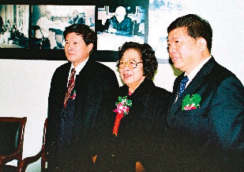 上图、中共徐州市委书记徐鸣、徐州市市长曹新平陪同著名歌唱家王昆(中) 参观李可染旧居 /2007年