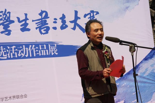 出席今天活动的领导和嘉宾有,徐州市文联党组成员、副主席王成奇,徐州市教育局办公室主任王志升,徐州市文联副主席、市书法家协会主席马亚,徐州市书法家协会副主席翟立新、张利、王国宇、祝培良、蒋振华、单晓光、李守银、陈晖等,此次活动由徐州市文联办公室主任、市书法家协会秘书长袁祖辉主持,以及此次大赛获奖、入展作者,优秀辅导老师和获得优秀组织奖的学校代表,市书法家协会的部分会员,书法爱好者,学生家长代表一同参加此次活动。