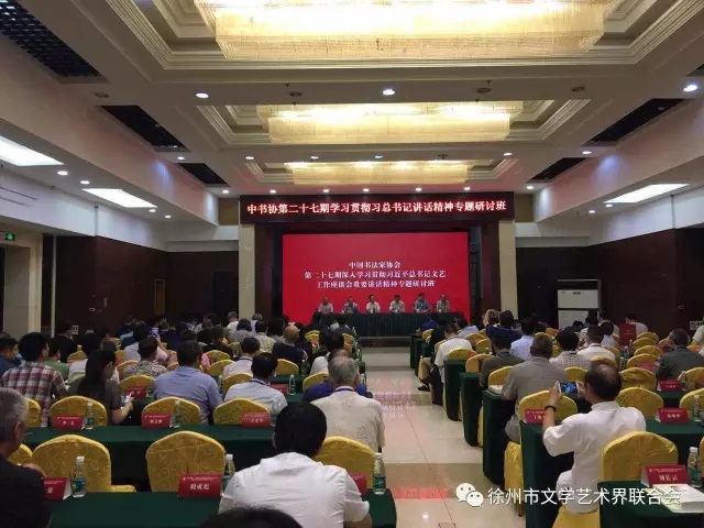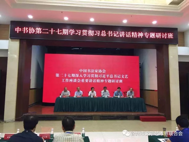 根据中宣部、财政部、文化部、新闻出版广电总局、中国文联、中国作协联合印发《2016—2017年全国文艺骨干和管理干部培训工作规划》及中国文联统一部署,中国书协于6月20日至23日在徐州举办第27期“中国书法家协会会员深入学习贯彻习近平总书记文艺工作座谈会重要讲话精神专题研讨班”。此次研讨班旨在引导广大文艺家、文艺工作者深刻领会习近平总书记文艺工作座谈会和中国文联十次代表大会上重要讲话精神以及党中央关于文艺工作、文联工作的重要指示精神。